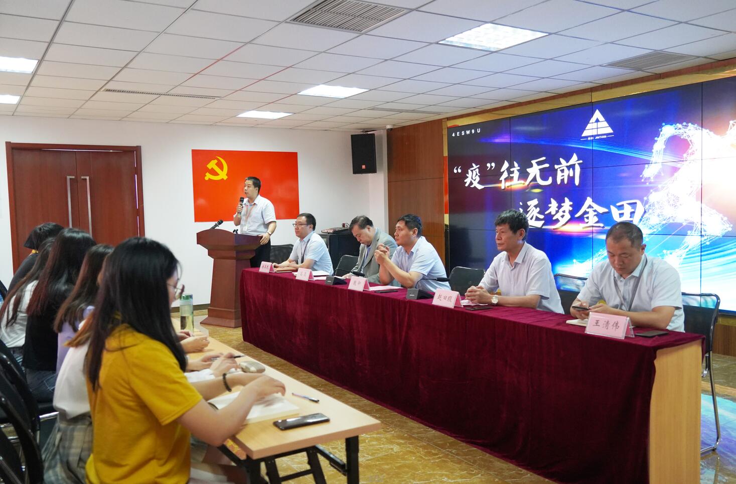 7月6日,金田集團(tuán)2020年優(yōu)秀應(yīng)屆畢業(yè)生迎新儀式在五樓會(huì)議室隆重舉行。受疫情影響,集團(tuán)采取了提前分批報(bào)到和線(xiàn)上、線(xiàn)下相結(jié)合的迎新模式。迎新儀式當(dāng)天,集團(tuán)董事長(zhǎng)魏卿、集團(tuán)監(jiān)事會(huì)主席趙曰瑕、集團(tuán)總經(jīng)理高昆、集團(tuán)副總經(jīng)理徐其民、集團(tuán)總經(jīng)理助理王清偉出席了此次迎新活動(dòng)。