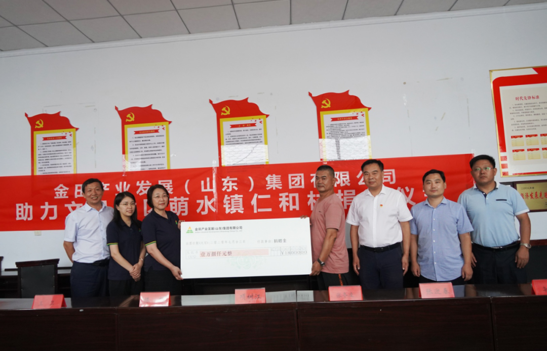 為繼續(xù)助力精準(zhǔn)扶貧脫貧,推動美麗鄉(xiāng)村建設(shè),金田集團于7月23日組織公司一行5人到文昌湖區(qū)萌水鎮(zhèn)仁和村村委會進行了捐贈活動。文昌湖區(qū)工委委員陳輝、萌水鎮(zhèn)黨委副書記鎮(zhèn)長王衛(wèi)、文昌湖區(qū)農(nóng)林局副局長周廣、文昌湖土地發(fā)展有限公司總經(jīng)理李暉以及仁和村兩委成員出席了此次活動。