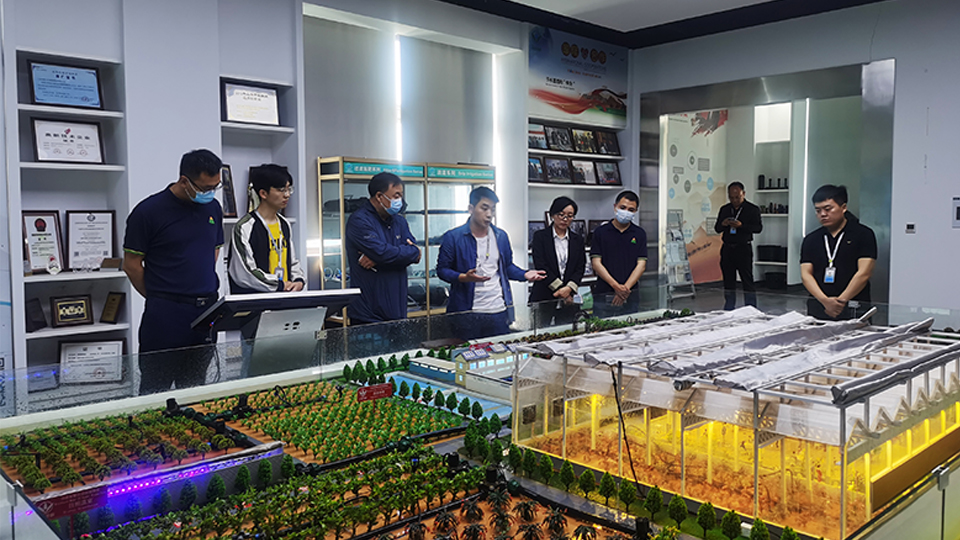 會(huì)后,在華維集團(tuán)工作人員的陪同下,金田集團(tuán)一行人參觀了灌溉博物館、智慧農(nóng)業(yè)云平臺(tái)、智慧農(nóng)業(yè)生產(chǎn)展示區(qū)。