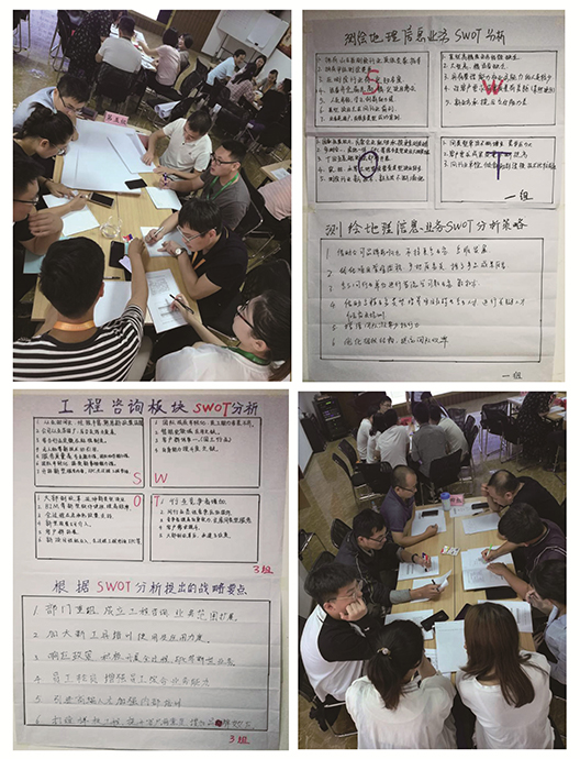 學(xué)員們也積極響應(yīng)鐘老師提出的知行合一,圍繞著各項議題,熱烈討論,將無形的知識變成了有型的成果,特別是一組測繪系統(tǒng)的學(xué)員們在培訓(xùn)結(jié)束后還認真做著溝通、分析。