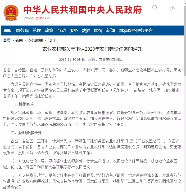 2.農(nóng)業(yè)農(nóng)村部關(guān)于下達(dá)2020年農(nóng)田建設(shè)任務(wù)的通知