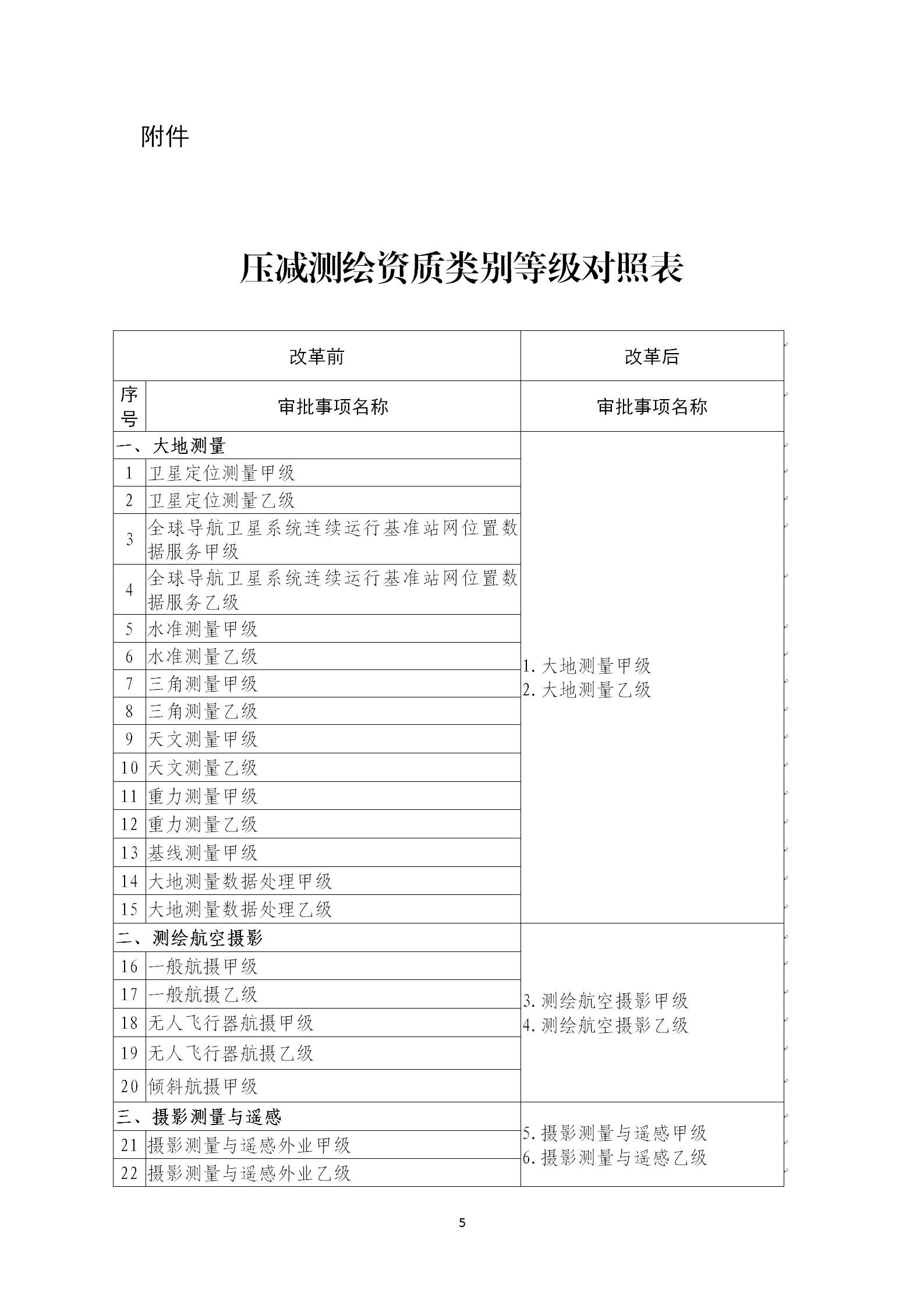 一是壓減測繪資質類別等級。將測繪資質由甲乙丙丁四個等級壓減為甲乙兩個等級。類別由55項壓減到10項。改革之后,測繪資質類別等級總數(shù)由138項壓減到20項,壓減幅度達到85.5%。