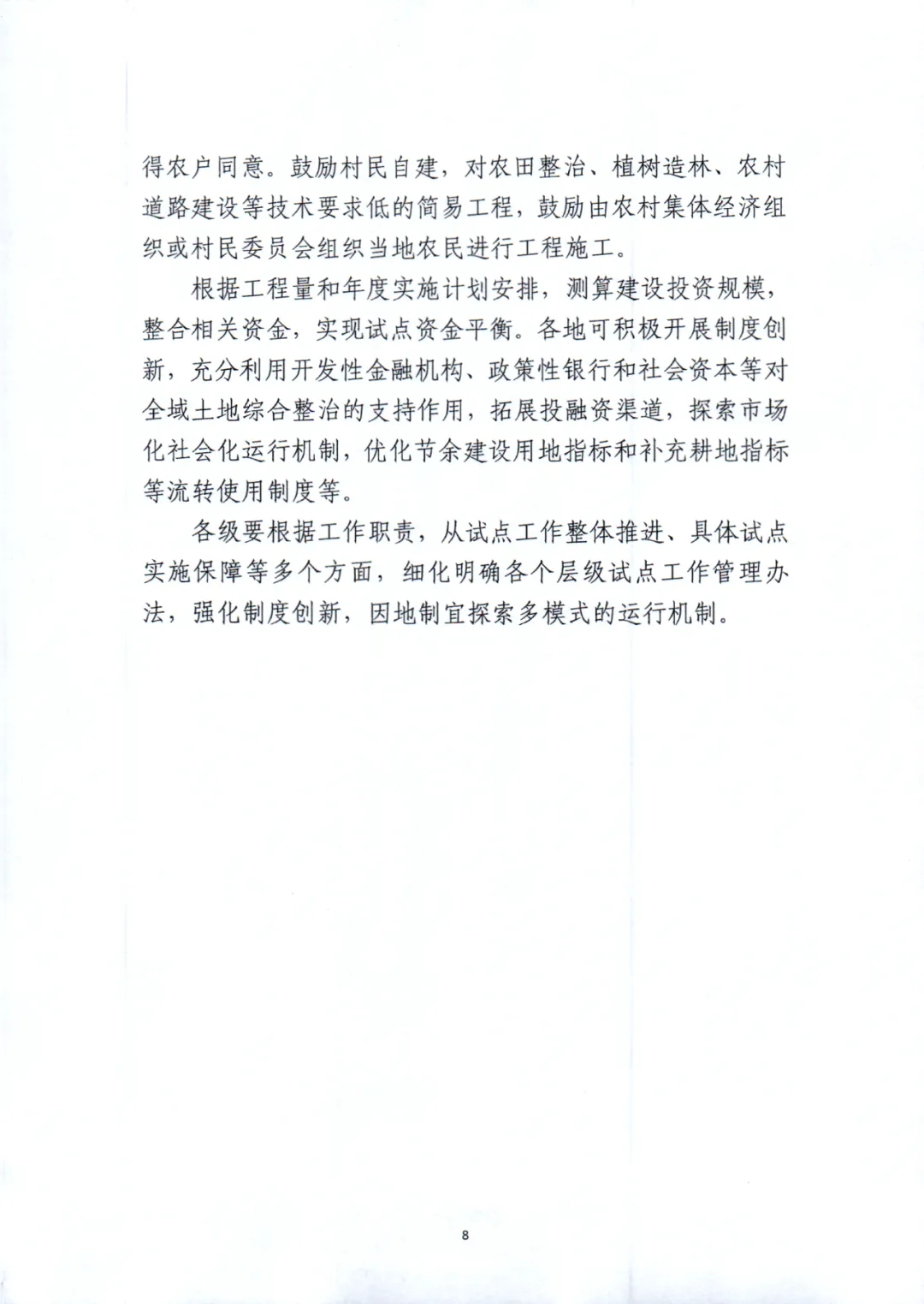 一是,要探索市場(chǎng)化、社會(huì)化運(yùn)行機(jī)制,進(jìn)行制度創(chuàng)新。拓展投融資渠道,充分利用開(kāi)發(fā)性金融機(jī)構(gòu)、政策性銀行和社會(huì)資本等對(duì)全域土地綜合整治的支持作用。